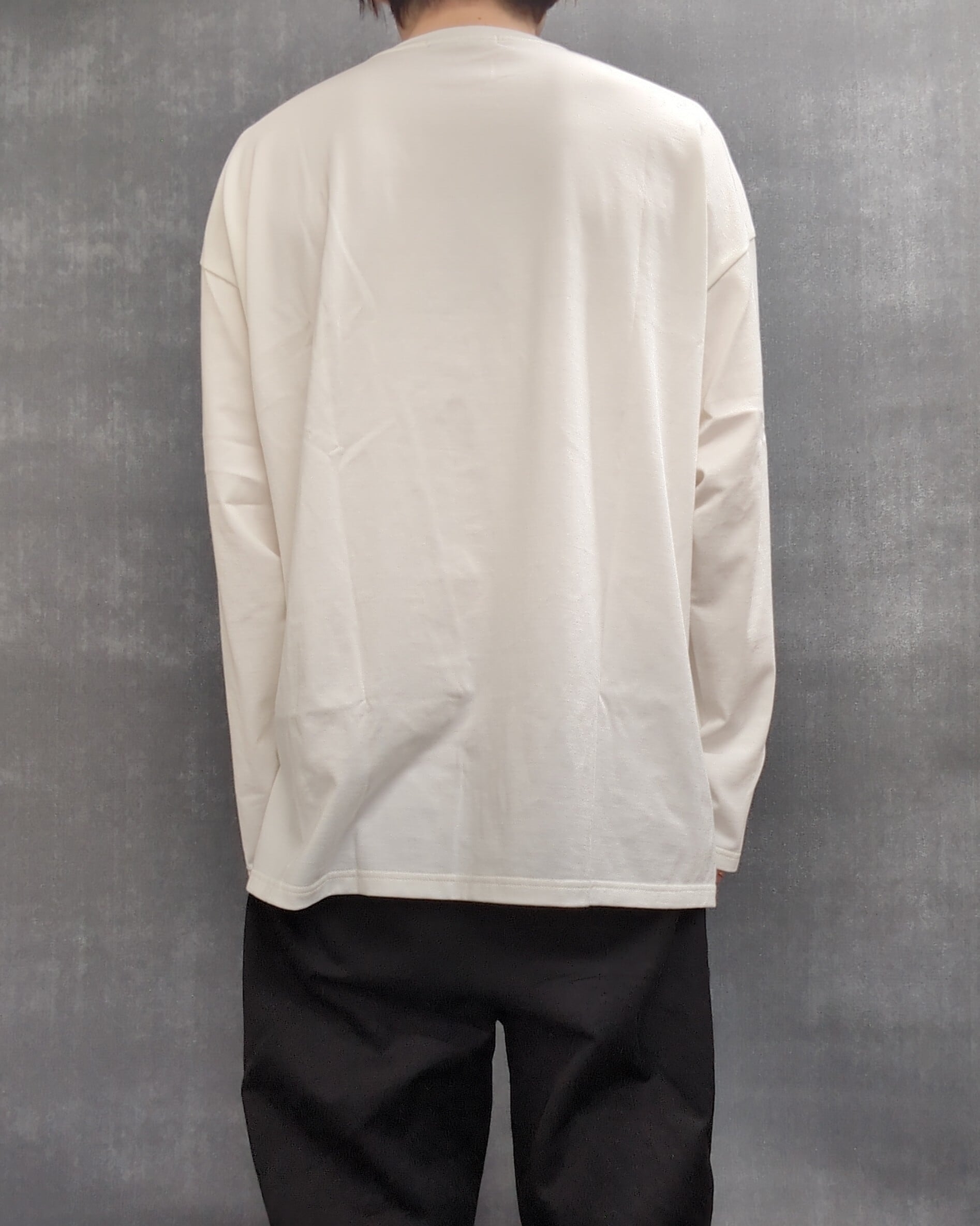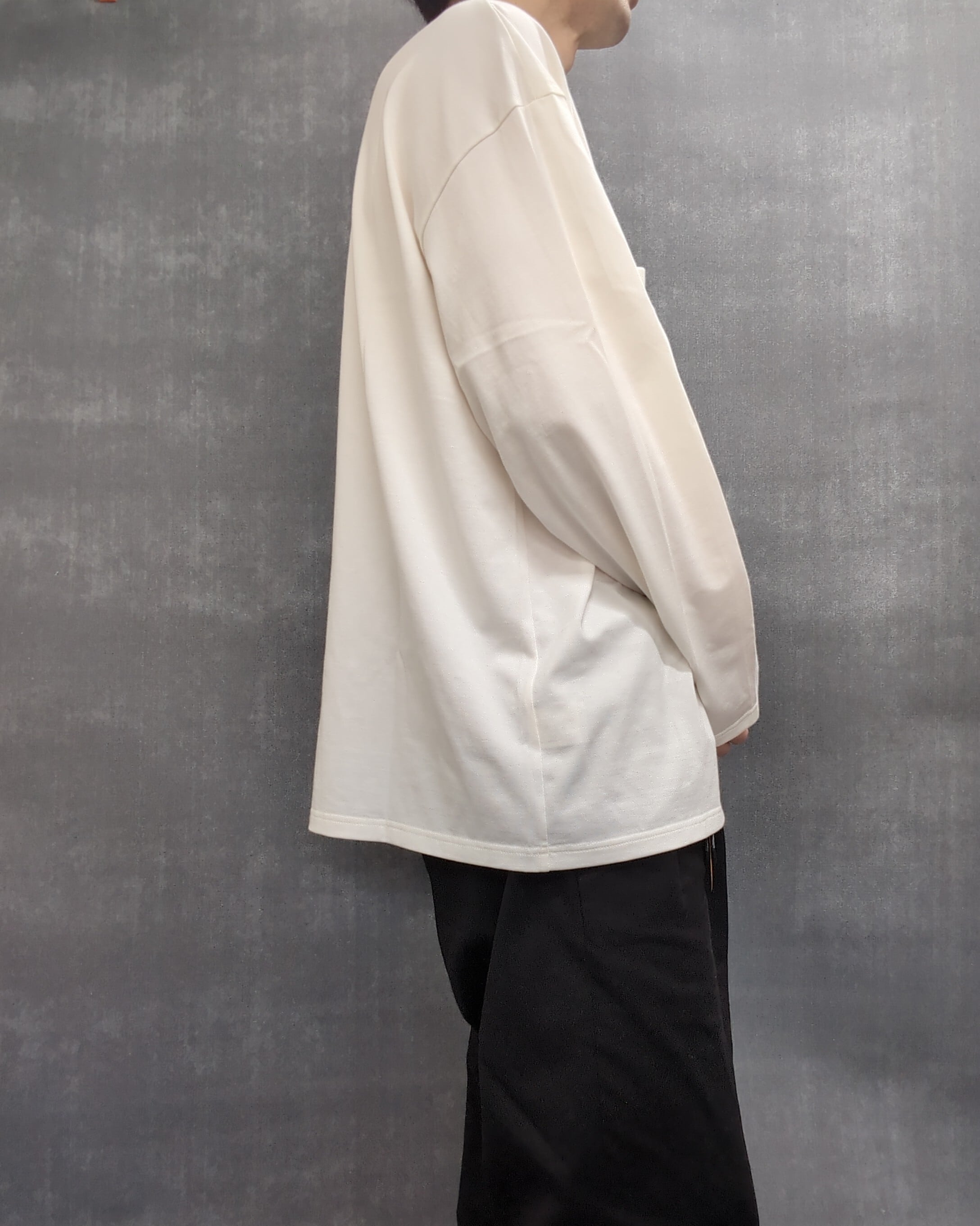 ゆとりのあるボックス型のシルエット、身巾を少し広めに取ることで身体のラインを拾うことなくドレープが生まれ、生地の優雅さが際立つ設計となっています。