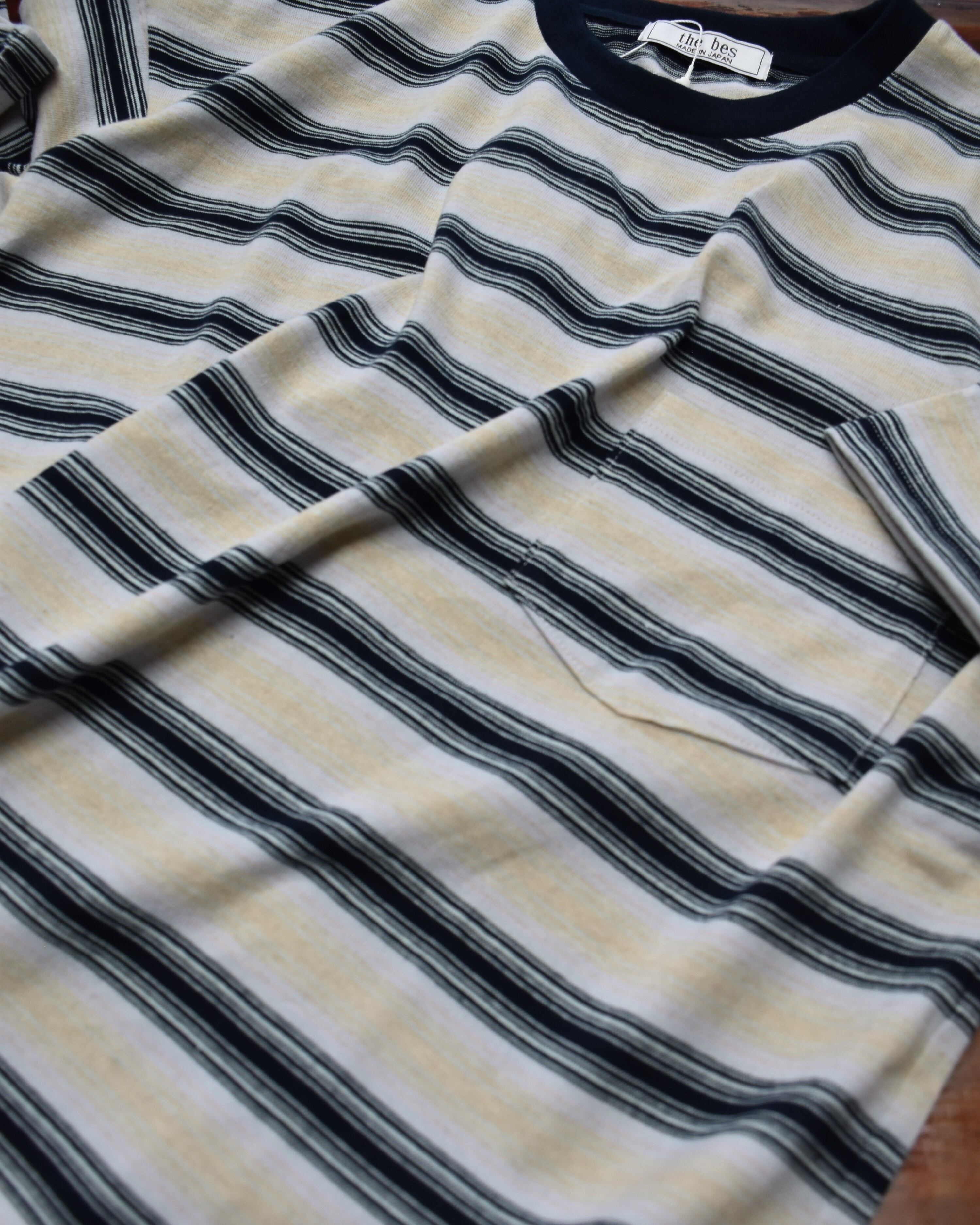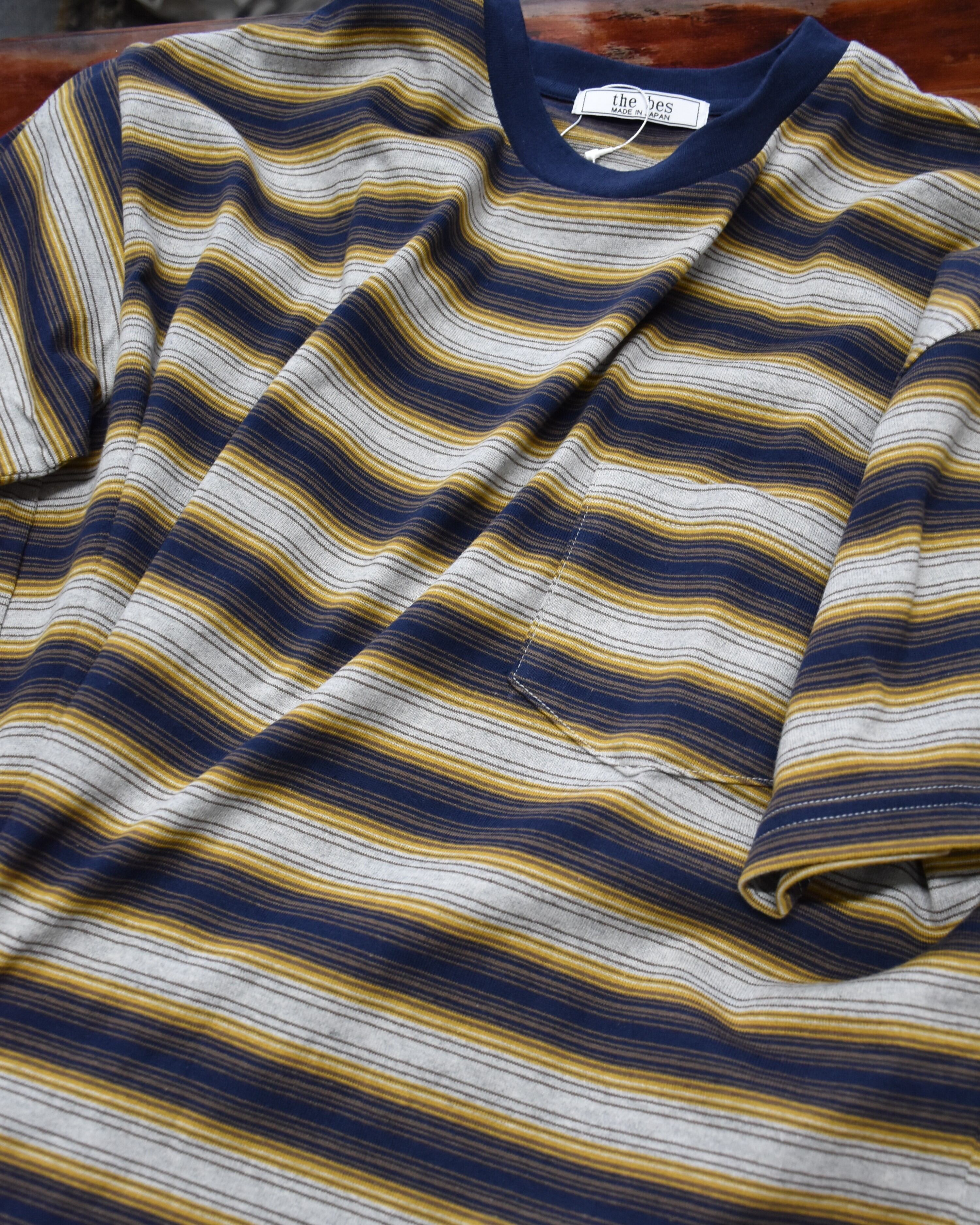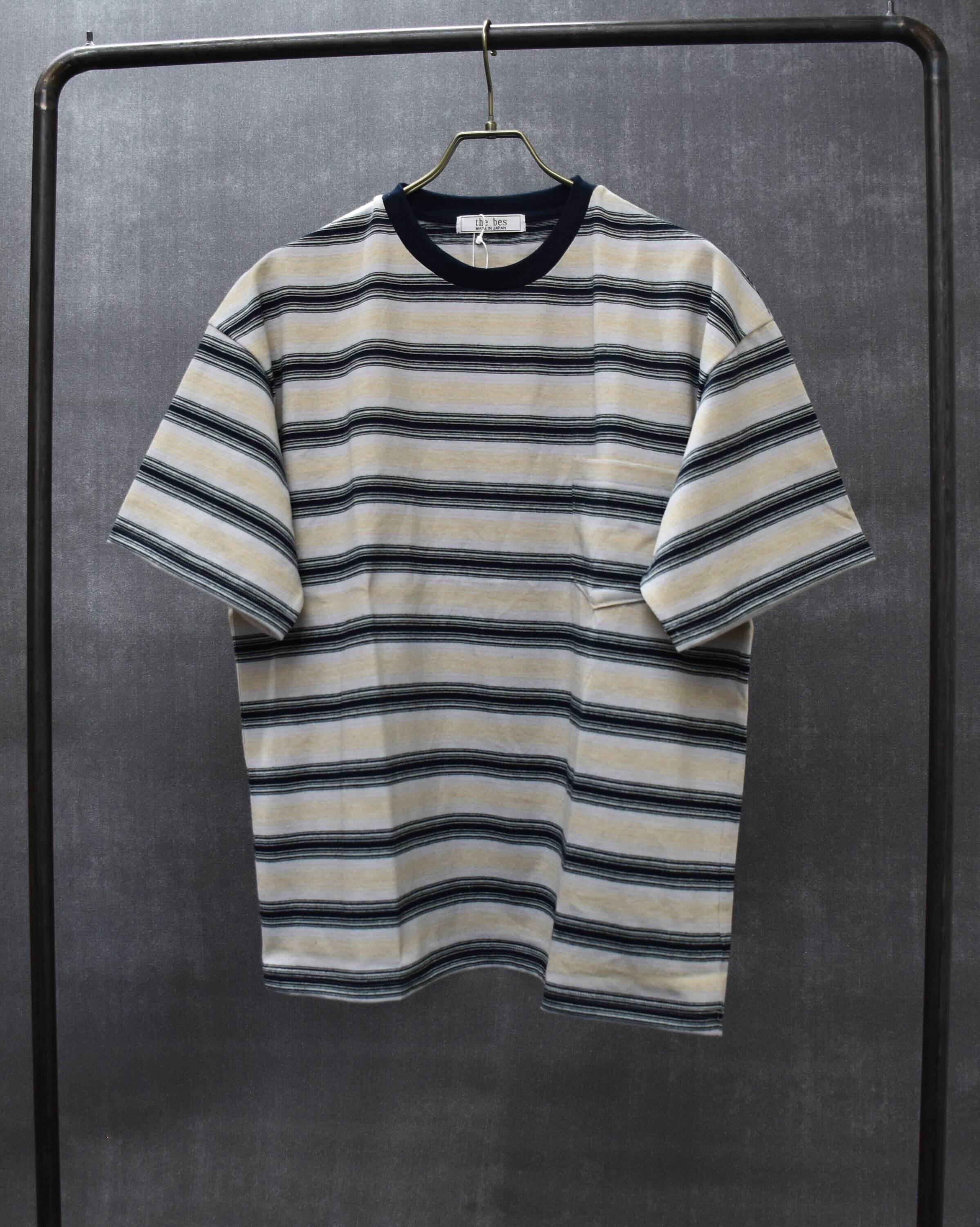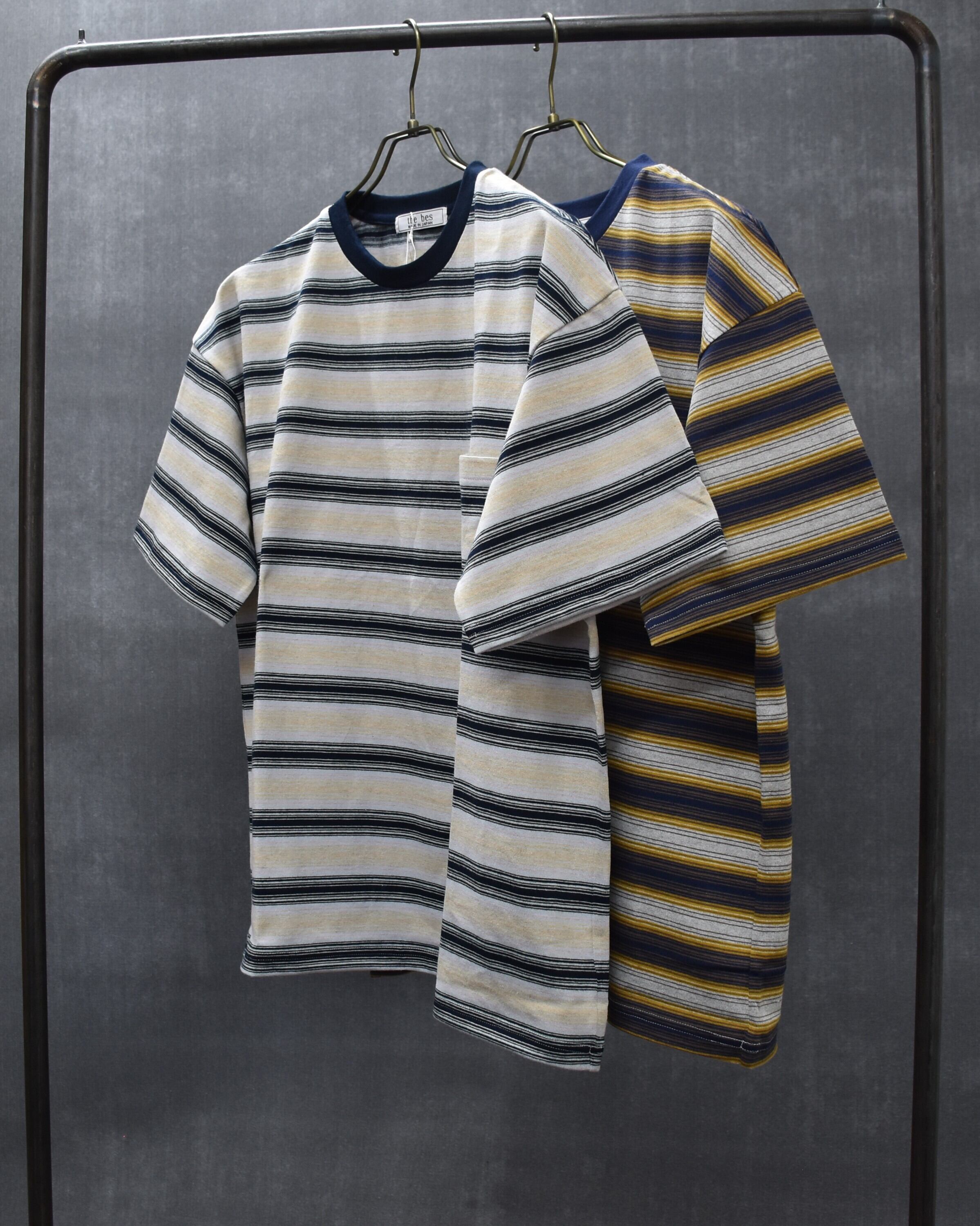 cotton/flax multi stripe jersey short sleeve.