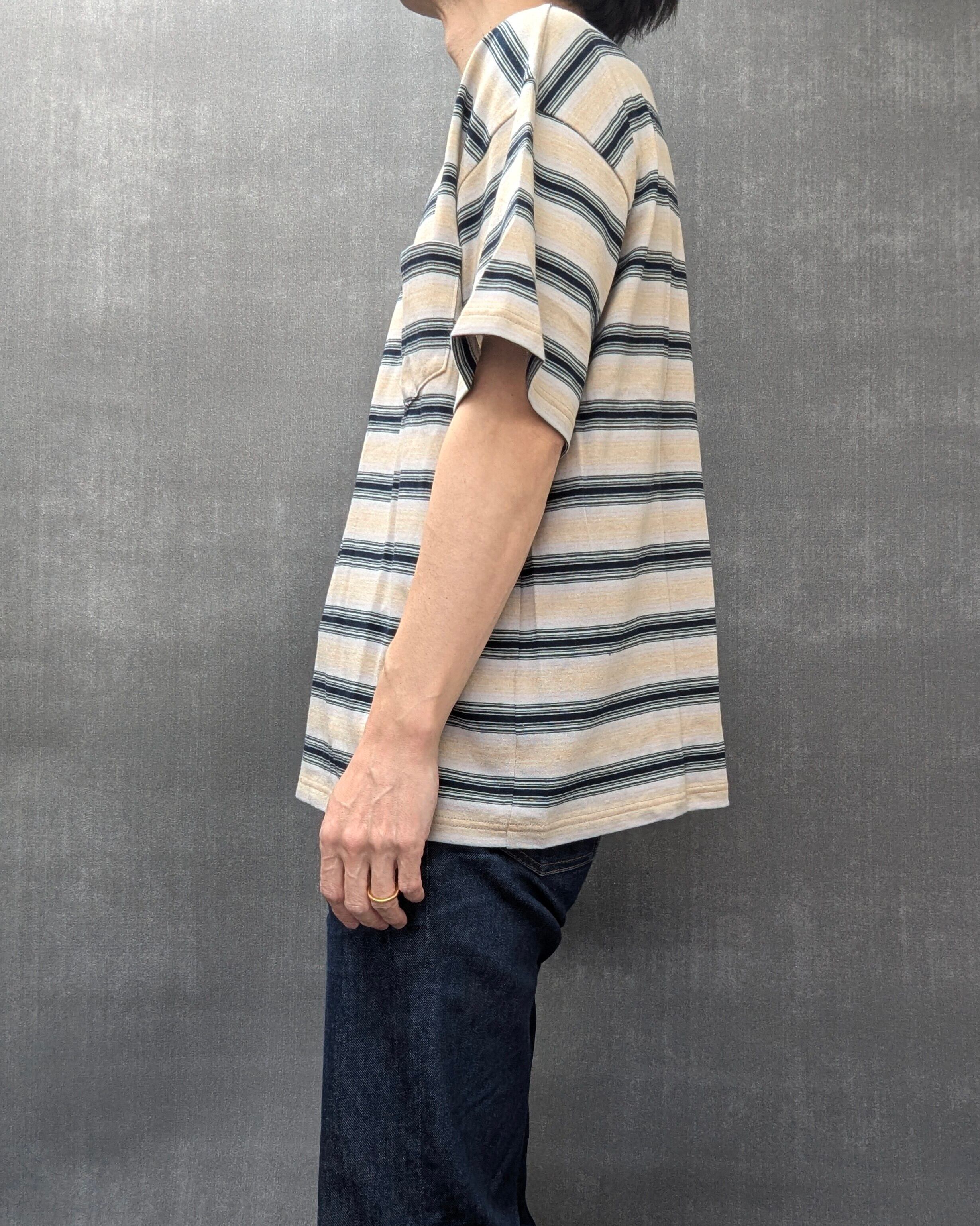 胸ポケット付きのワイドシルエットなTシャツとなります。